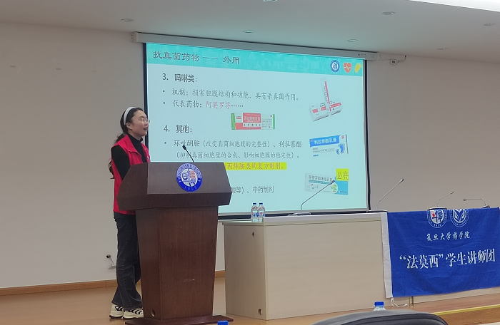 2023年4月27日下午,色情直播 “法莫西”学生讲师团面向张江校区后勤保障人员开展日常药物合理使用科普讲座。逾50位物业管理人员、食堂服务人员、安保队员等参与。