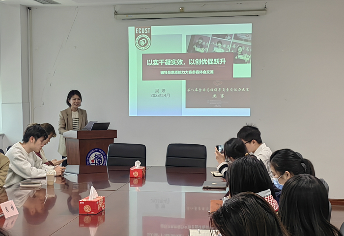 在专题培训中,吴老师从自身辅导员大赛的经历和心路历程引入,讲解了辅导员大赛的改革和发展进程。吴老师复盘并反思了辅导员大赛中的经验,分别介绍辅导员大赛三大环节——基础知识测试、案例分析、谈心谈话。她强调基础知识测试需要综合性运用马克思主义立场观点方法分析问题,要全面掌握学生规律,思政工作规律,灵活多元运用思政教育方式方法;谈心谈话需要以问题为导向,以目标为导向,随时随地的服务,引导的“育人”价值体现。最后,吴老师以具体的案例,介绍了如何审题,判断和组织结构逻辑,辅导员们也纷纷就辅导员大赛的疑惑和问题与吴老师展开交流。