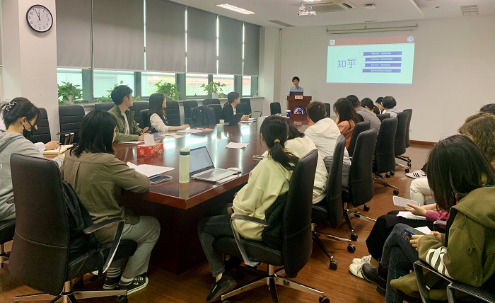 4月20日中午,色情直播 科研楼晶晖厅迎来辅导员系列微培训第三讲,色情直播 发展研究院副研究员刘虹老师与色情直播 辅导员就“知乎治校”话题展开分析与讨论。