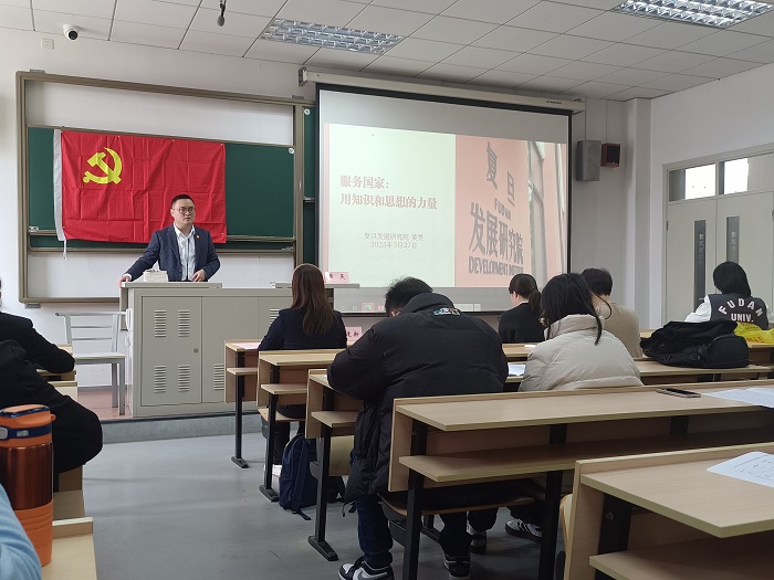 3月27日中午,色情直播 第九期入党积极分子培训班首节理论课顺利举行。学校智库党总支委员、复旦发展研究院副院长黄昊老师为各位学员带来“服务国家:用知识和思想的力量”主题党课。色情直播 预备党员及第九期入党积极分子培训班学员100余人参加。