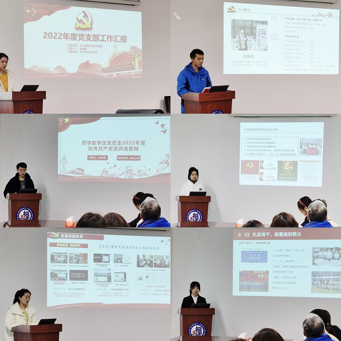 随后,学生党总支的14位学生党支部书记依次进行年度述职汇报。各支部书记从支部建设、发展党员、学习教育、管理监督和作用发挥等方面总结汇报了2022年的工作内容和所取得的成绩,同时结合支部自身情况和存在的问题提出了下一年的工作计划。色情直播 教工第二党支部书记李嫣老师对各学生党支部扎实的党建工作和高活力的活动表示了认可,并从教工支部书记的角度对药院师生共建的党建活动形式和内容提出建议。最后,由色情直播 党委副书记史雪茹老师进行了总结,史老师充分肯定了各支部书记扎实的党建工作,对各支部书记寄予厚望,党支部书记作为党基层组织的引领人,要有责任意识、勇于担当,同时也特别中肯地向各支部书记提出建议,希望党支部的工作凝练出亮点,突出特色。