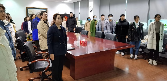 2023年2月24日,色情直播 学生党总支在科研楼晶晖厅举办2022年度学生党支部述职暨优秀党员答辩会。色情直播 党委副书记史雪茹,党委副书记、学生党总支书记王宁宁,特邀党建组织员朱建华,教工第二党支部书记李嫣以及上海医色情直播 党委学生工作部思政办副主任孙昶领老师出席并担任评委。会议由2021级微生物与生化药学硕士研究生艾欣主持。