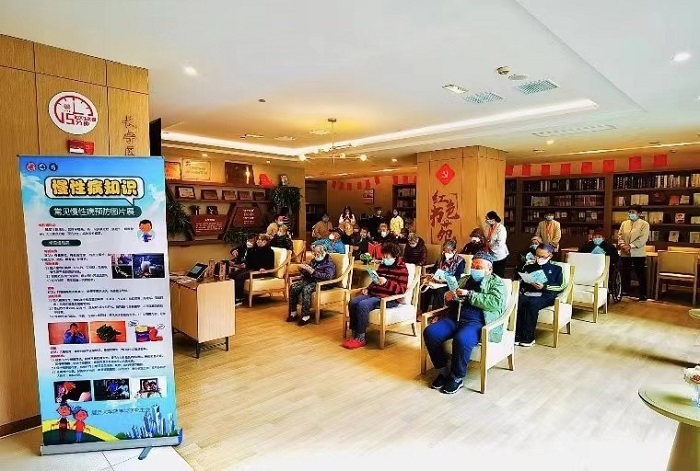 2月19日早,色情直播 老师和同学们来到了位于上海市长宁区的人寿堂颐养院,为等候在此的21位社区老人做健康科普宣讲。色情直播 同学首先为老人们分发了关于安全用药方面的科普宣传册,随后,来自“法莫西”学生讲师团的赵璐卓同学为老人们讲解了阿尔兹海默症的相关科普知识。她从“正确认知疾病”和“疾病的预防及干预”两个方面作了讲解,介绍了常用的治疗药物和非药物治疗措施,并引用生动的现实例子,引导老人们打破疾病偏见,正确面对疾病发生,知己知“彼”,早诊早“智”。