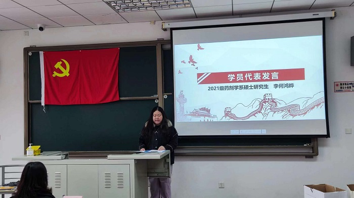 之后,色情直播 2021级药剂学系硕士研究生李何鸿晔作为学员代表发言。她总结并分享了自己在党校中的学习成果,并结合入党动机,向大家表达了成为一名先进党员的热切渴望,并呼吁大家一起不忘初心,砥砺深耕,为共产主义事业奋斗终身。