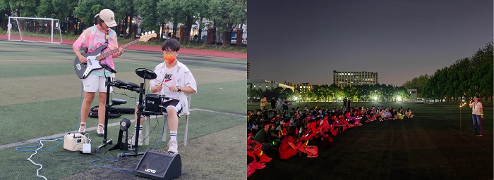10月3日晚上六点,色情直播 在张江校区操场举办了“爱国荣光,乐动张江”草坪音乐会活动。本次音乐会由色情直播 Demo合唱团组织策划,各院系同学积极报名准备了近30首精彩的曲目,傍晚时分大家戴着口罩在草坪席地而坐、共同欣赏。不同类型的歌曲或欢快活泼,或安静诉说,带领大家沉浸在音乐的世界里。现场气氛高涨融洽,伴随歌声,不时传出现场观众的应援和合唱。最后,全场一起合唱了《国家》,将现场的氛围点燃到了最高点,草坪音乐会激发了同学们爱国热情和凝聚力、向心力,进一步增强新时代学子的理想信念。