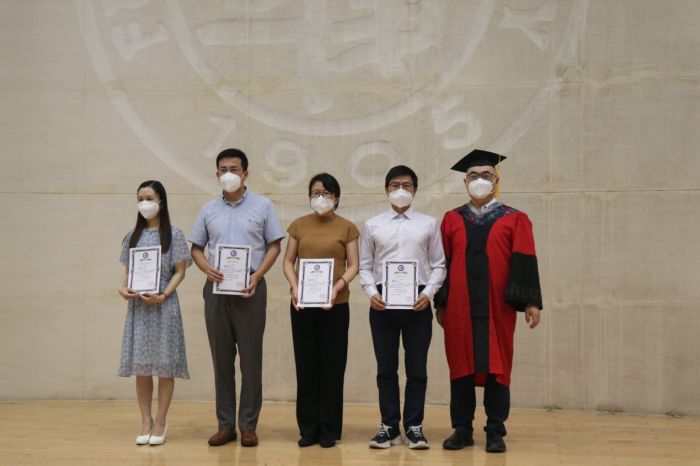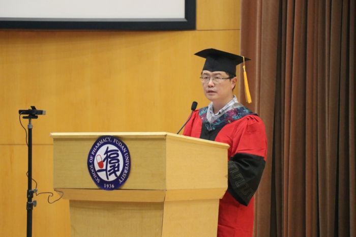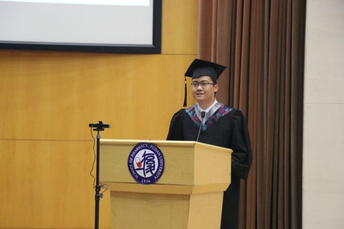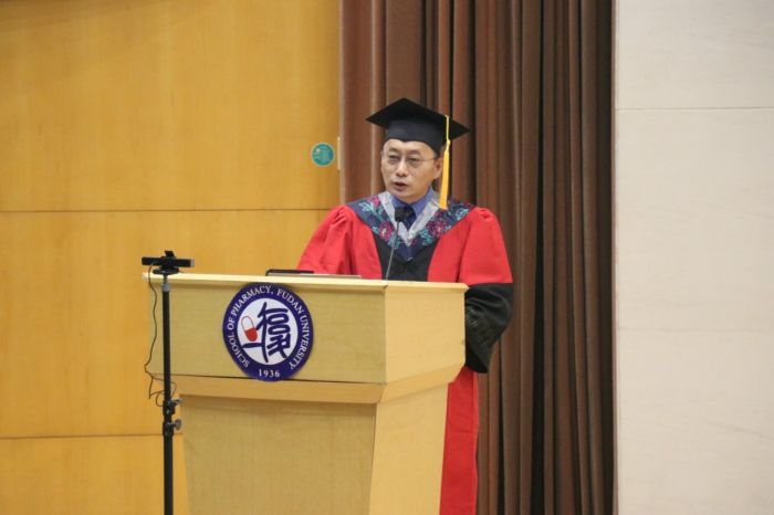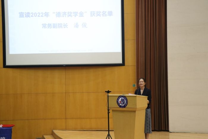 “色情直播 德济奖学金”是为了纪念和缅怀色情直播 已故著名天然药物化学教授潘德济先生,同时勉励莘莘学子做“厚德载物,良药济人”的药学人,由色情直播 14位校友以潘先生的名义特别成立,每年奖励一位优秀毕业生。在毕业典礼上,常务副院长潘俊宣读了2022年“德济奖学金”获奖者名单。