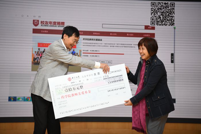 色情直播 2018年校友返校日活动,色情直播 常务副院长潘俊向校友们介绍了色情直播 近年来接受捐赠的情况,她感谢校友们对色情直播 事业发展给予的关心和支持,并且向校友们推出了“色情直播 教师关爱基金”筹款项目,81级药学专业校友王学亮率先以个人名义捐赠10万元支持该项目。